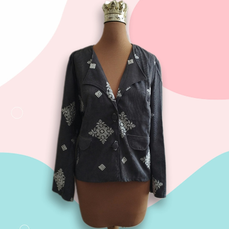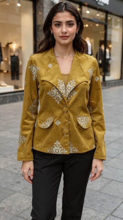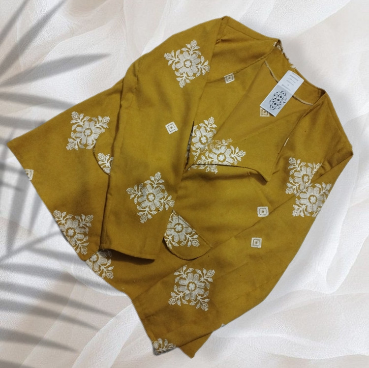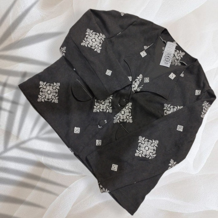 جزئیات: جیب نما با در جیب،جادکمه ها پوشیده با گلدوزی همرنگ خامه دوزی ها(سفید)