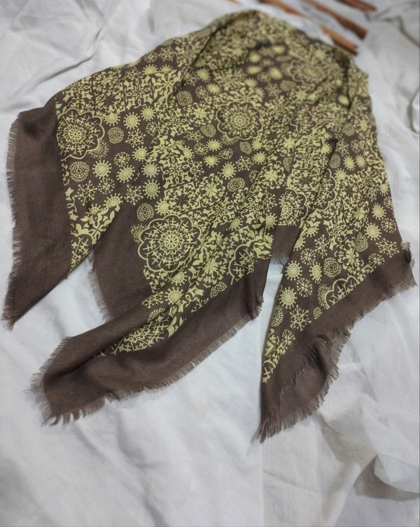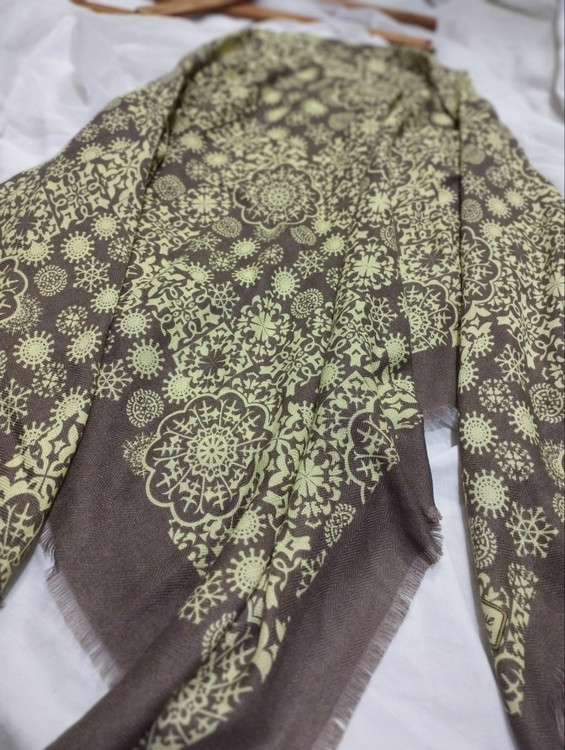 روسری نخی پاییزی ریشه پرزی قواره ۱۳۰ دو رنگ قهوه ای روشن و تیره