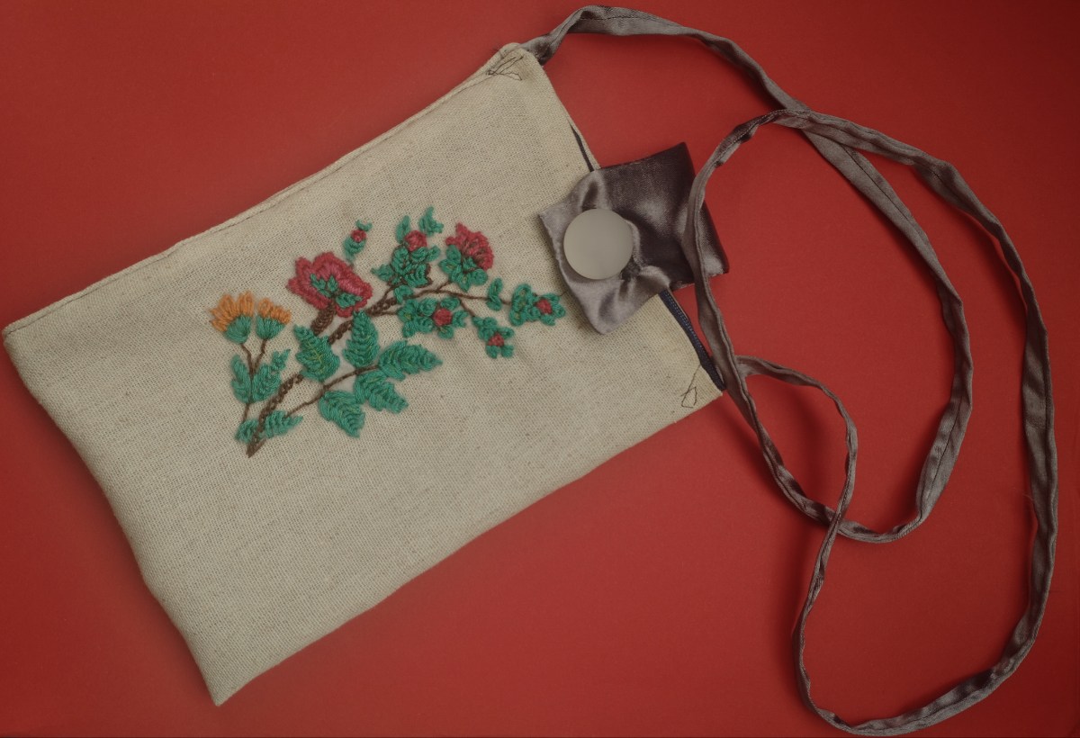 پک گلدوزی شده رز شامل روسری، مینی اسکارف،کیف و کیف ارایش،گیره پاپیون و تل پارچه ای، جوراب - ارسال رایگان،- مزون یونا