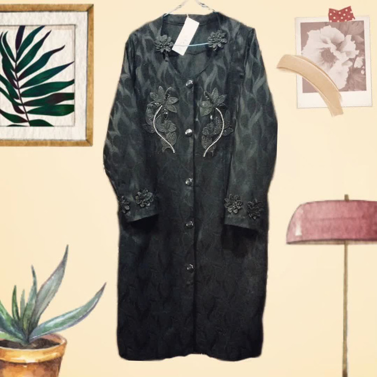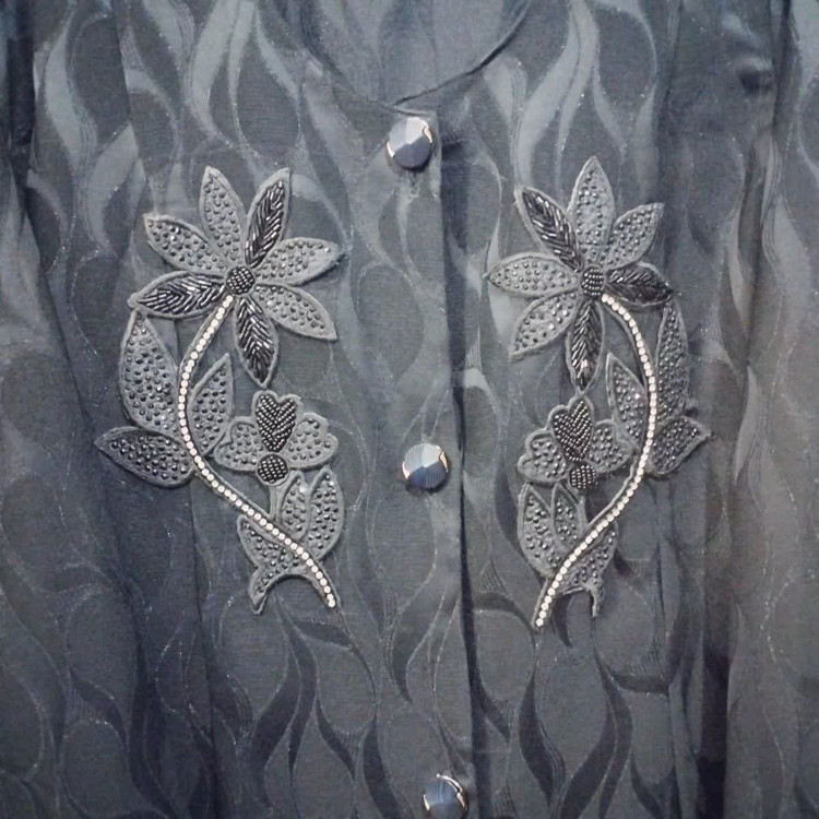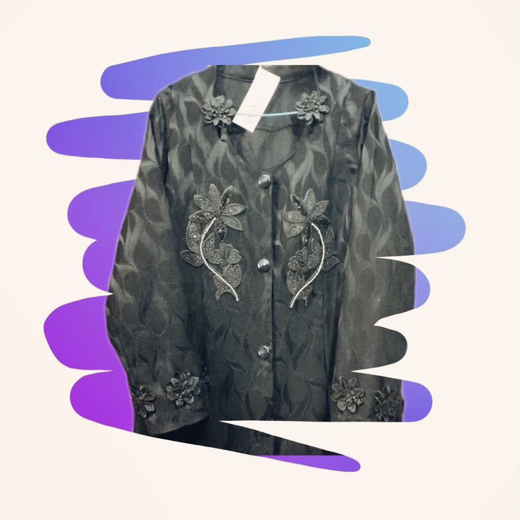 جزئیات: جلوبسته،رنگ مشکی،کنار یقه آستین ها و روی سینه ها کارشده